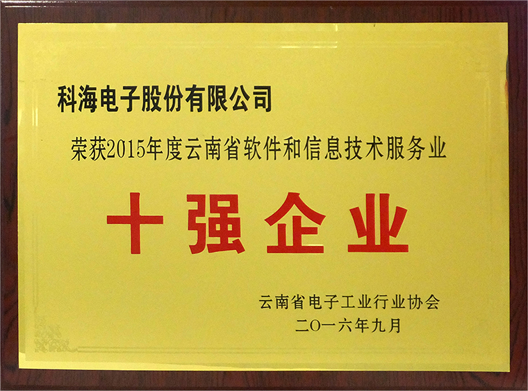 九月,一個收獲的季節,公司榮獲了云南省電子工業行業協會頒發的“2015年度云南省軟件和信息技術服務業十強企業”的榮譽稱號。