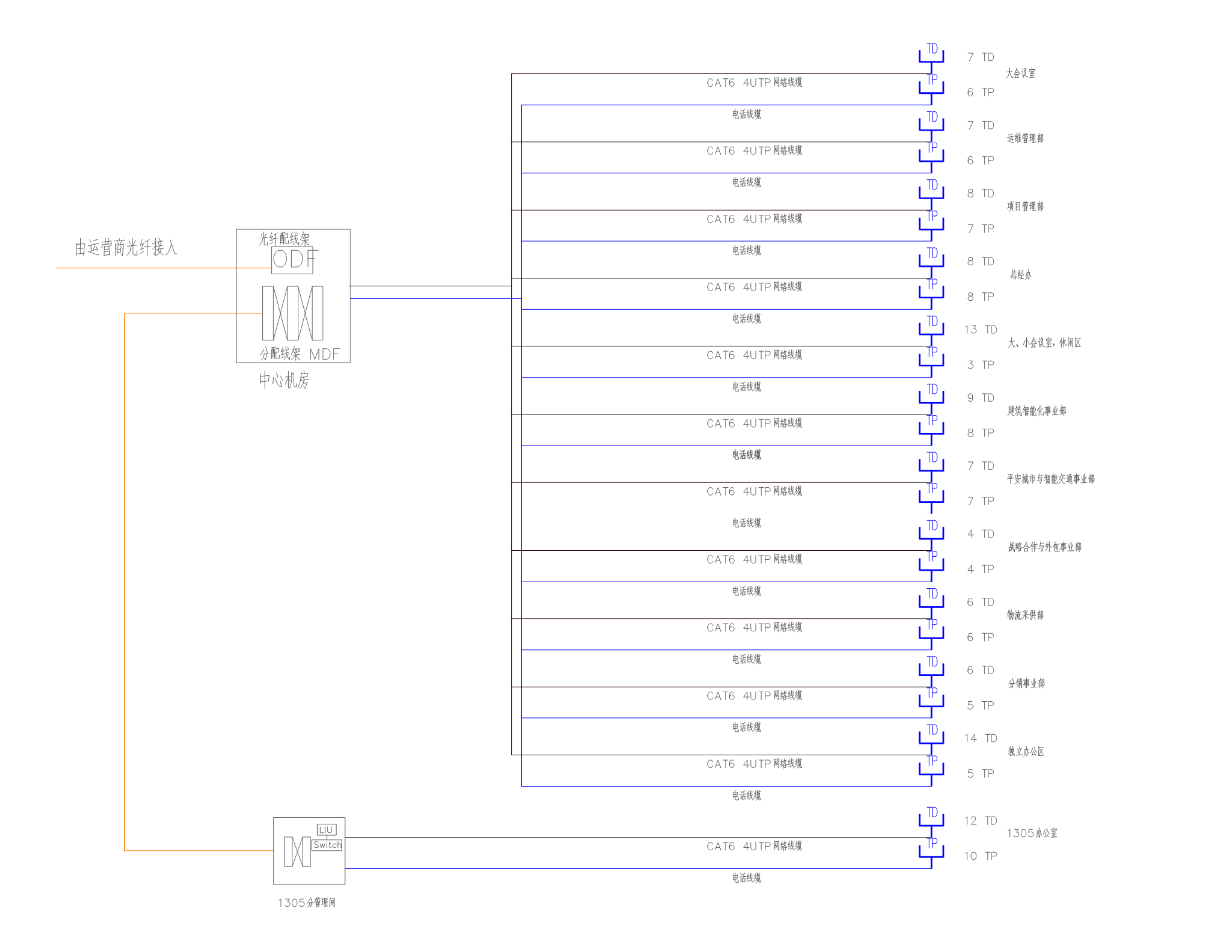 作為現代商務辦公、技術實現、信息傳輸的場所寫字樓,是社會發展、技術進步的重要標志,建立高速、穩定、安全的網絡,是實現公司信息化管理系統的基礎;∥錮聿閌峭緗ㄉ璧鬧匾槌剎糠,它將語音、數據、圖像等設備彼此集成相連;綜合布線系統應具有開放性、靈活性和擴展性,并對其服務的設備具有一定的獨立性,它是實現建筑智能化系統集成的統一中央平臺。