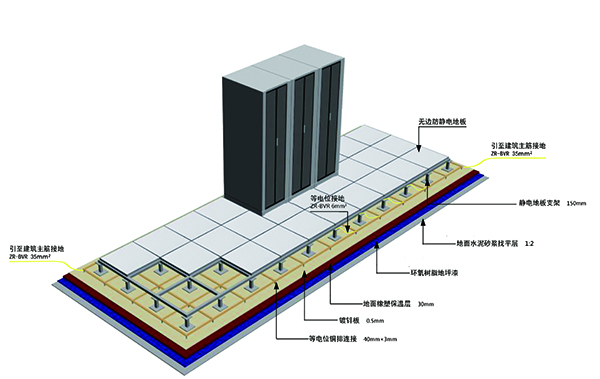 機房作為數(shù)據(jù)的處理和樞紐中心,成為信息系統(tǒng)中重點;ざ韻,而機房設備多,電源線、通訊線、數(shù)據(jù)線互相交叉,又極易遭受感應雷擊,所以機房防雷問題是系統(tǒng)集成中必須重點考慮的問題,為確保各智能化系統(tǒng)穩(wěn)定可靠運行及保障機房有良好的工作環(huán)境,設計須考慮做到技術尊龍凱時登錄、經濟合理、安全適用。除滿足《機房防雷設計規(guī)范》(GB50174-93)與《建筑物防雷設計規(guī)范》(GB50057-94),《建筑物電子信息系統(tǒng)防雷技術規(guī)范》(GB50343-2004)要求的同時,絕緣體的靜電電位不應大于1kv,機房內的導體必須與地面作可靠的聯(lián)接,不得有對地絕緣的孤立導體,接地電阻不應大于4Ω,同時還應符合現(xiàn)行國家有關標準規(guī)范的規(guī)定。