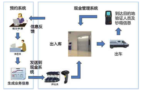 由于金庫與遞解員、遞解員與網點間的款箱交接是銀行重點防范的的風險環節之一,強化交接業務的管理,規范交接業務的操作是明確責任、防范業務風險的重要措施,針對銀行對款箱交接關系的需求,科?⒊鲆惶淄晟頻南低,通過身份電子信息驗證、RFID射頻技術,無線技術在款箱交接業務過程中,從交接時間的發起開始電子登記,記錄事件變化過程,固化操作流程以加強交接業務管理工作狀態的可控性,并運用銀行內部網絡傳遞身份識別信、記錄金庫管理員與遞解員、遞解員與網點、網點預約款箱調撥信息。