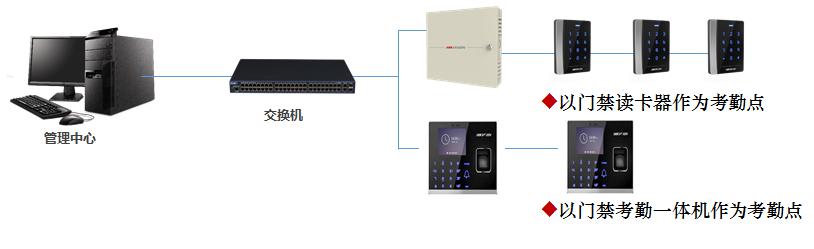 考勤管理系統(tǒng)通過(guò)綜合管理平臺(tái)實(shí)現(xiàn)與數(shù)據(jù)庫(kù)的數(shù)據(jù)交互,包括人員資料、卡片資料、刷卡數(shù)據(jù)等多種資料。硬件的設(shè)置、權(quán)限的發(fā)放以及人員的卡片發(fā)放等由綜合管理平臺(tái)統(tǒng)一完成。系統(tǒng)的架構(gòu)如下圖所示:
