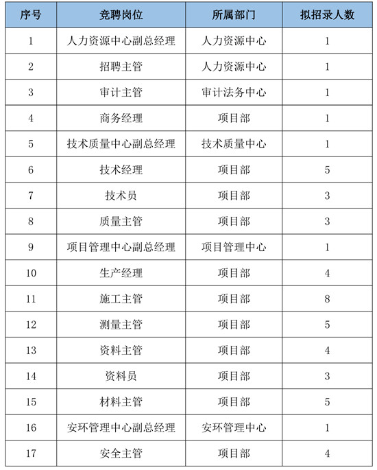 為適應公司快速發展的人才需求,建立人才公平競爭、優勝劣汰的激勵機制,經公司研究決定,在全公司范圍內進行內部競聘選拔,具體通知如下: