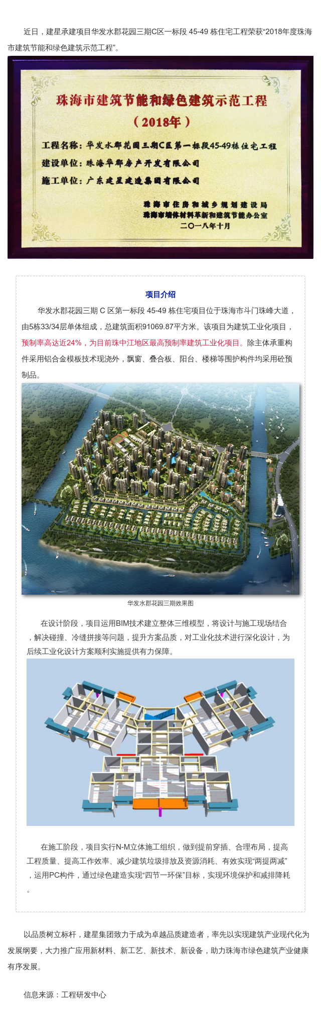 建星承建項目華發(fā)水郡花園三期C區(qū)一標(biāo)段榮獲珠海市建筑節(jié)能和綠色建筑示范工程