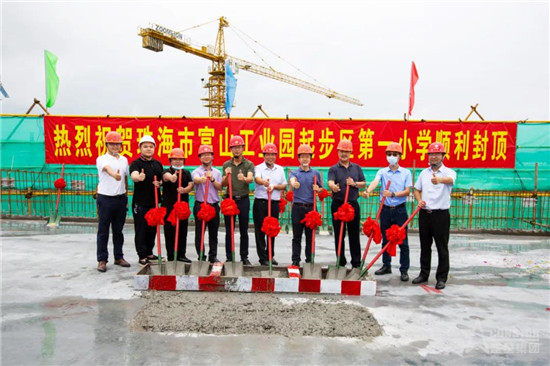 伴隨著最后一方混凝土澆筑到位,5月18日,建星集團旗下全資子公司中易建建設承建的富山工業園起步區第一小學項目,歷經45天“奮戰”順利封頂,以高標準、高質量完成任務,見證了“建星速度”。富山工業園黨委書記、管委會主任陳家平,珠海華金開發建設有限公司董事長王輝,建星集團副總裁兼項目管理中心總經理黃鵬共同出席封頂儀式。
