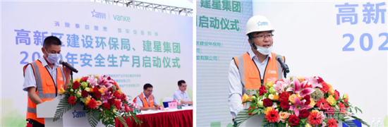 6月16日,高新區建設環保局、建星集團“2020年安全生產月”活動在萬科桃源里居項目現場正式啟動。高新區建設環保局局長李保衛、建筑工程安全監督站站長劉云書、建星集團總裁王愛志、珠海萬科發展有限公司副總經理顧德永等親臨現場。