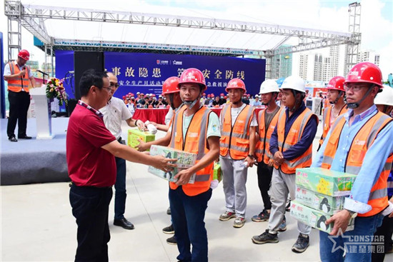 隨著夏季高溫天氣的到來,為切實保障廣大職工在高溫天氣下工作的身心健康,建設單位向施工人員代表發放防暑降溫物資,讓一線職工感受到關愛和溫暖。