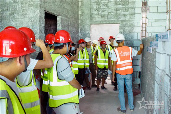 隨后,現(xiàn)場(chǎng)講解員帶領(lǐng)學(xué)員現(xiàn)場(chǎng)觀摩,著重介紹了項(xiàng)目施工過(guò)程的整體管理模式、特色亮點(diǎn)環(huán)節(jié)和各個(gè)施工環(huán)節(jié)的細(xì)節(jié)處理方式。