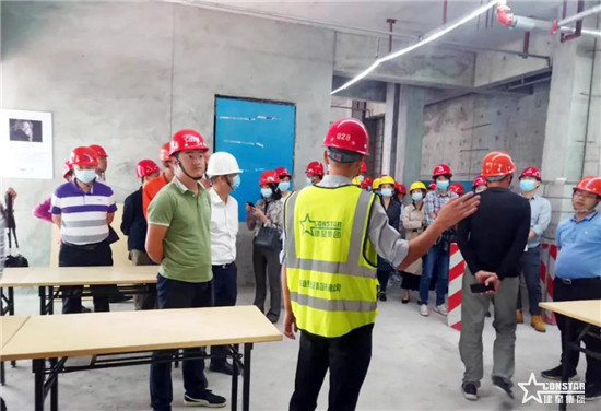 在講解員的帶領下,觀摩團分組進行觀摩。大家先后觀摩安全體驗區、質量樣板區、工藝展示區、實用工具展示臺、生產大課堂等,對項目新工藝、新材料、新技術、信息化管理應用有更深入的了解。