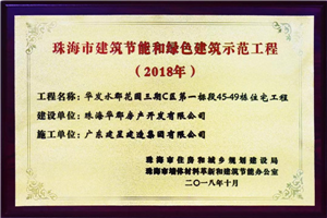 近日,建星承建項目華發水郡花園三期C區一標段 45-49 棟住宅工程榮獲“2018年度珠海市建筑節能和綠色建筑示范工程”。