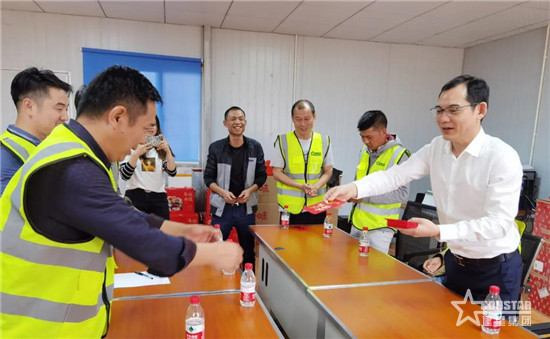 2月3-4日,集團總裁王愛志帶隊趕赴項目一線,為就地過年工人送去新春慰問和祝福。在慰問座談會上,他強調黨員要充分發揮先鋒模范作用,項目設立黨員先鋒崗,樹立防疫搶工標桿形象;項目部在做好防疫措施的同時,豐富員工生活,確保就地過年工人度過一個暖心的春節。