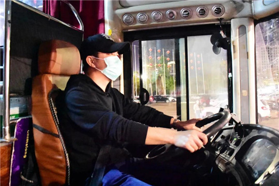“剛開始接到接車任務,其實家人還是蠻擔心我的。不過專車的防疫措施做得很好,做過全面消毒,原本可以坐50多人的大巴,因為要保持一定距離,按規定一排只能坐一個人,所以只坐了一半的人數。雖然不遠千里一趟接人數不多,但為了大家安全,我們覺得也值得!這一趟來回3600公里,整整奔波了3天3夜,今晚終于可以好好睡覺了,不容易,哈哈……”